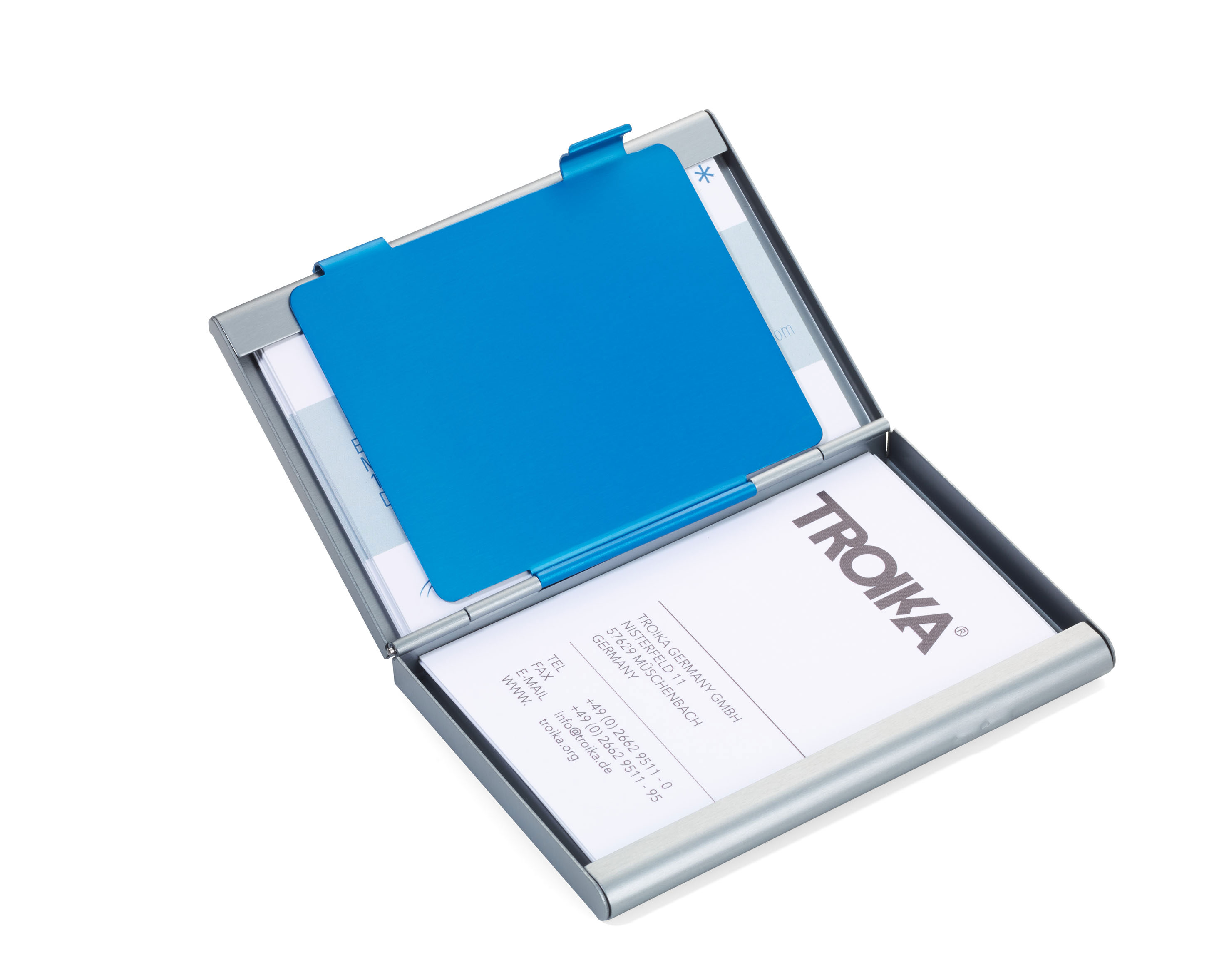 | Seo-Name | TROIKA Visitenkartenetui mit farbiger Trennwand, blau, titanfarben, "ZWEI-FACH" |