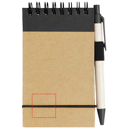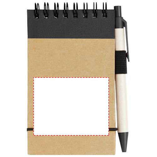 Mit dem Zuse Recycling-Notizblock mit farblich passendem Stift lassen sich schnell Ideen notieren. Der kleine Notizblock enthält 40 linierte Blätter aus A7 Recyclingpapier, passt also in jede kleine oder große Tasche, liegt gut in der Hand und ist vor allem nachhaltig. Verschiedene Druckoptionen stehen zur Verfügung, um ein beliebiges Logo auf der Außenseite des Hardcovers anzubringen.