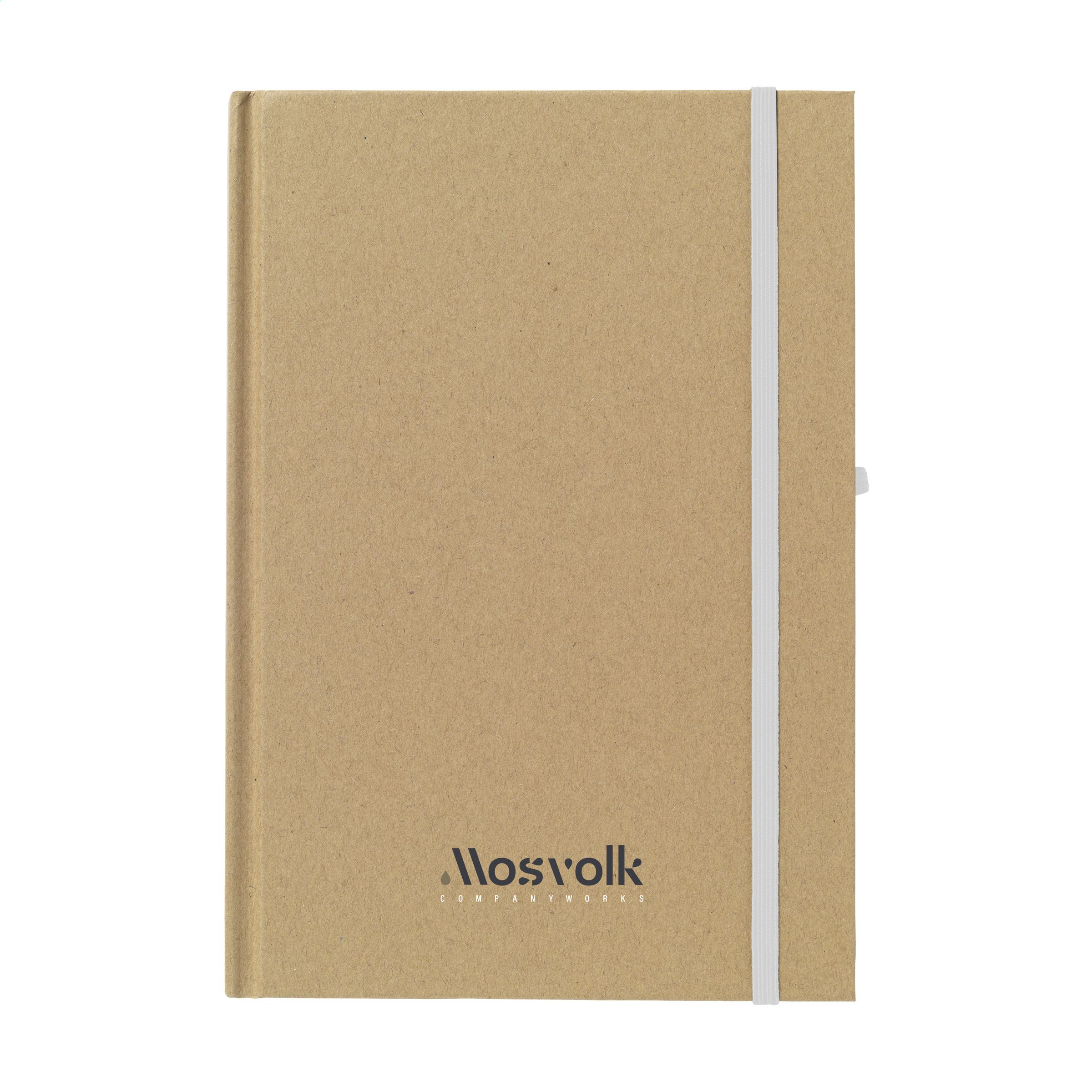 Notizbuch im A5-Format aus recyceltem Material. Mit ca. 80 Blatt/160 Seiten cremefarbenem, liniertem Papier (70 g/m²), praktischem Stiftfach und elastischem Verschluss.