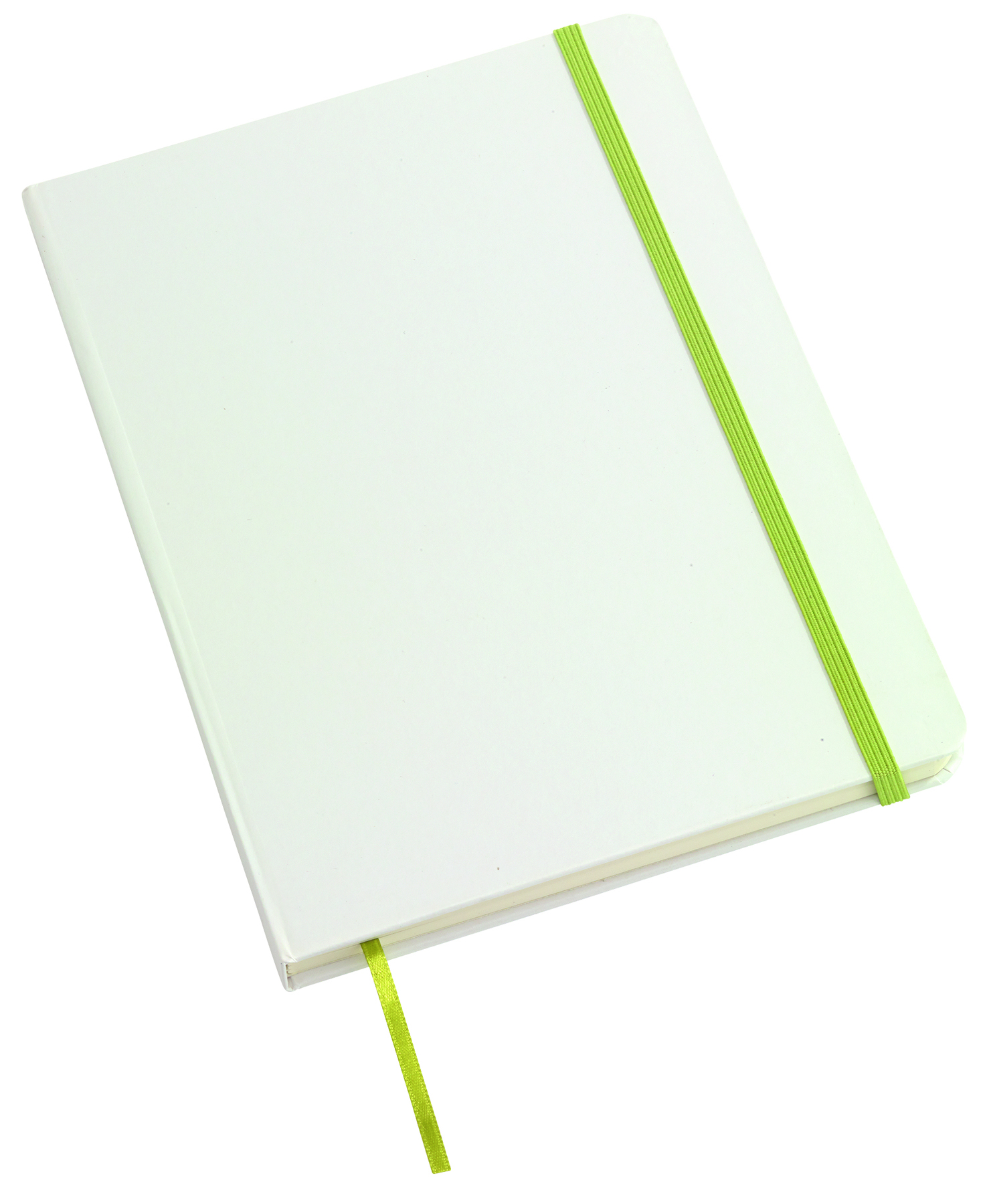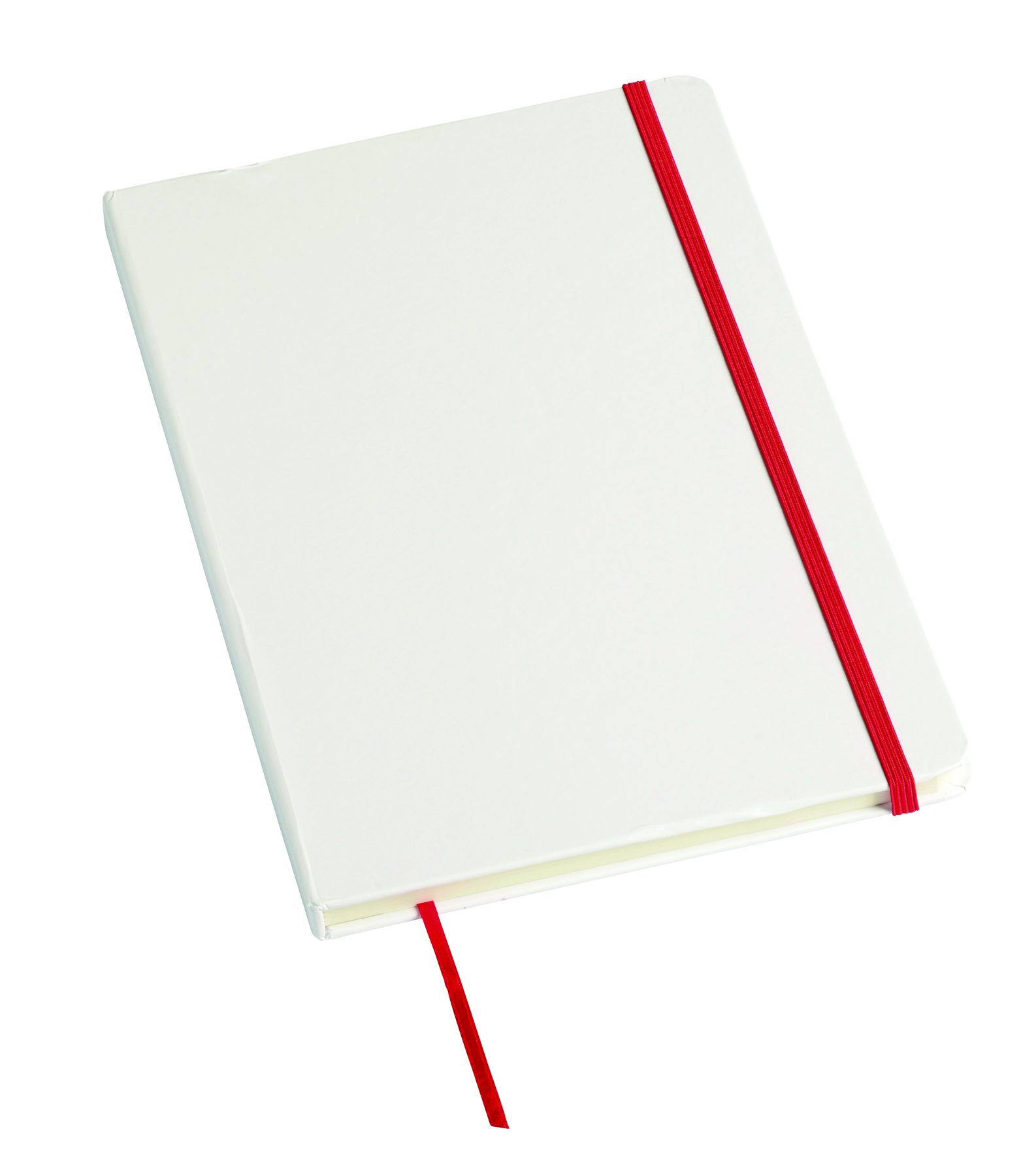 Notizbuch AUTHOR im DIN-A5-Format mit abgerundeten Ecken: farbiges Gummiband zum Verschließen und integriertes Lesezeichen, 80 Blätter, liniert, 70g/m²