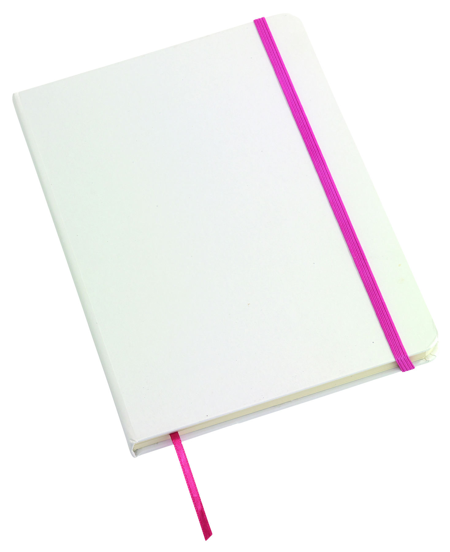 Notizbuch LECTOR im DIN-A5-Format mit abgerundeten Ecken: farbiges Gummiband zum Verschließen und farbige Seitenränder, integriertes Lesezeichen, 80 Blätter, blanko, 70g/m²