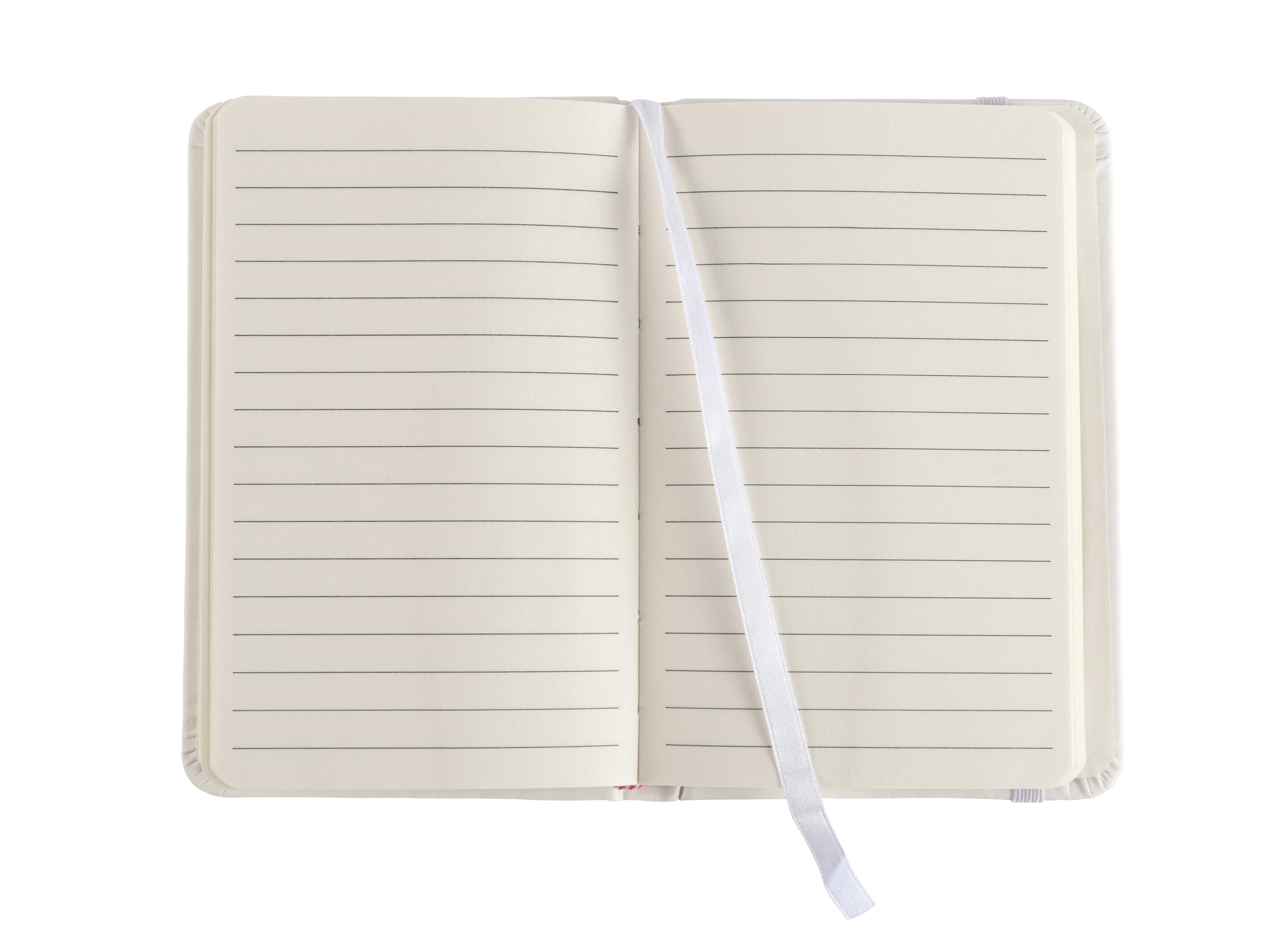 Kompaktes Notizbuch im A6-Format mit ca. 96 Blatt/192 Seiten crèmefarbenem, liniertem FSC Mix zertifiziertes Papier (80 g/m²). Mit gebundenem Rücken und hartem Umschlag, Aufbewahrfach, elastischem Band und seidener Leselitze.
