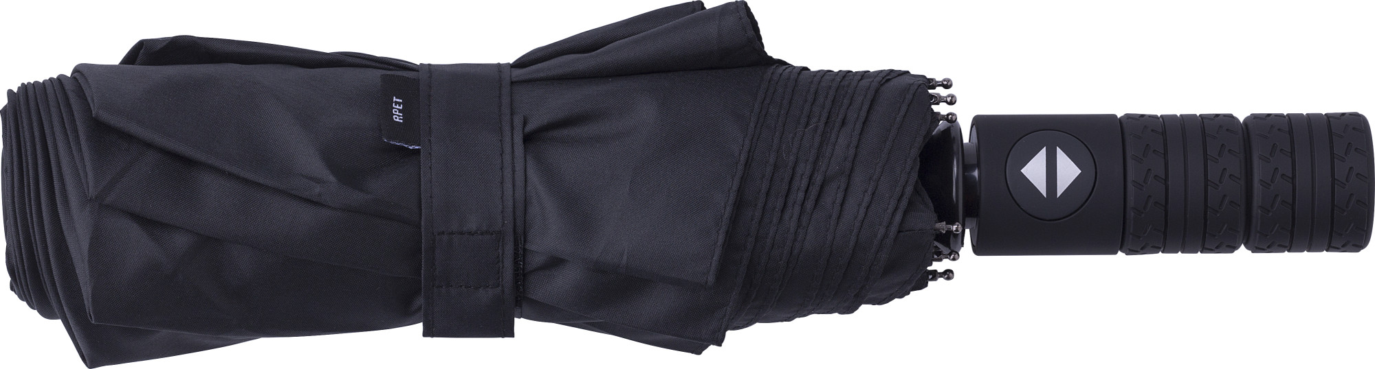 rPET 190T, faltbarer Automatikschirm mit acht Paneelen. Druckknopf zum Öffnen und Schließen.