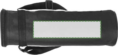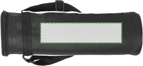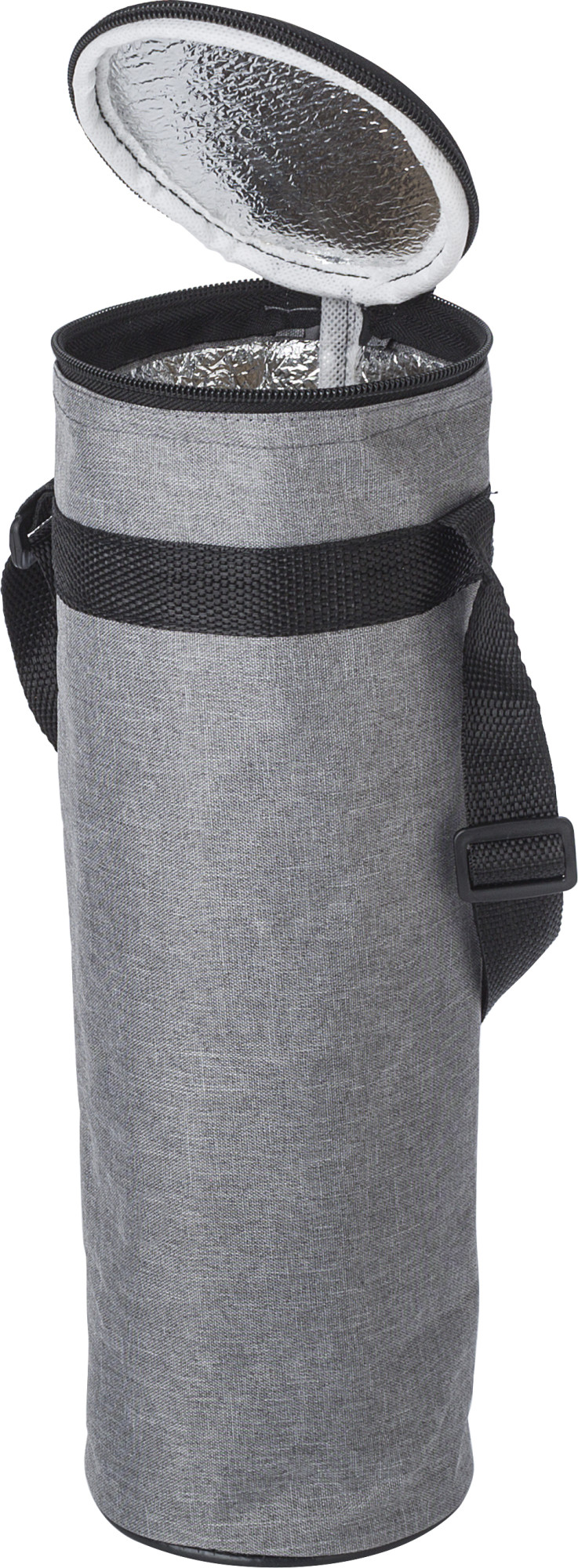 rPET (300D) Polyester-Kühltasche für Flaschen mit Aluminium-Innenseite. Passt für eine 1,5-Liter-Flasche. Mit Reißverschluss und verstellbarem Tragegurt.