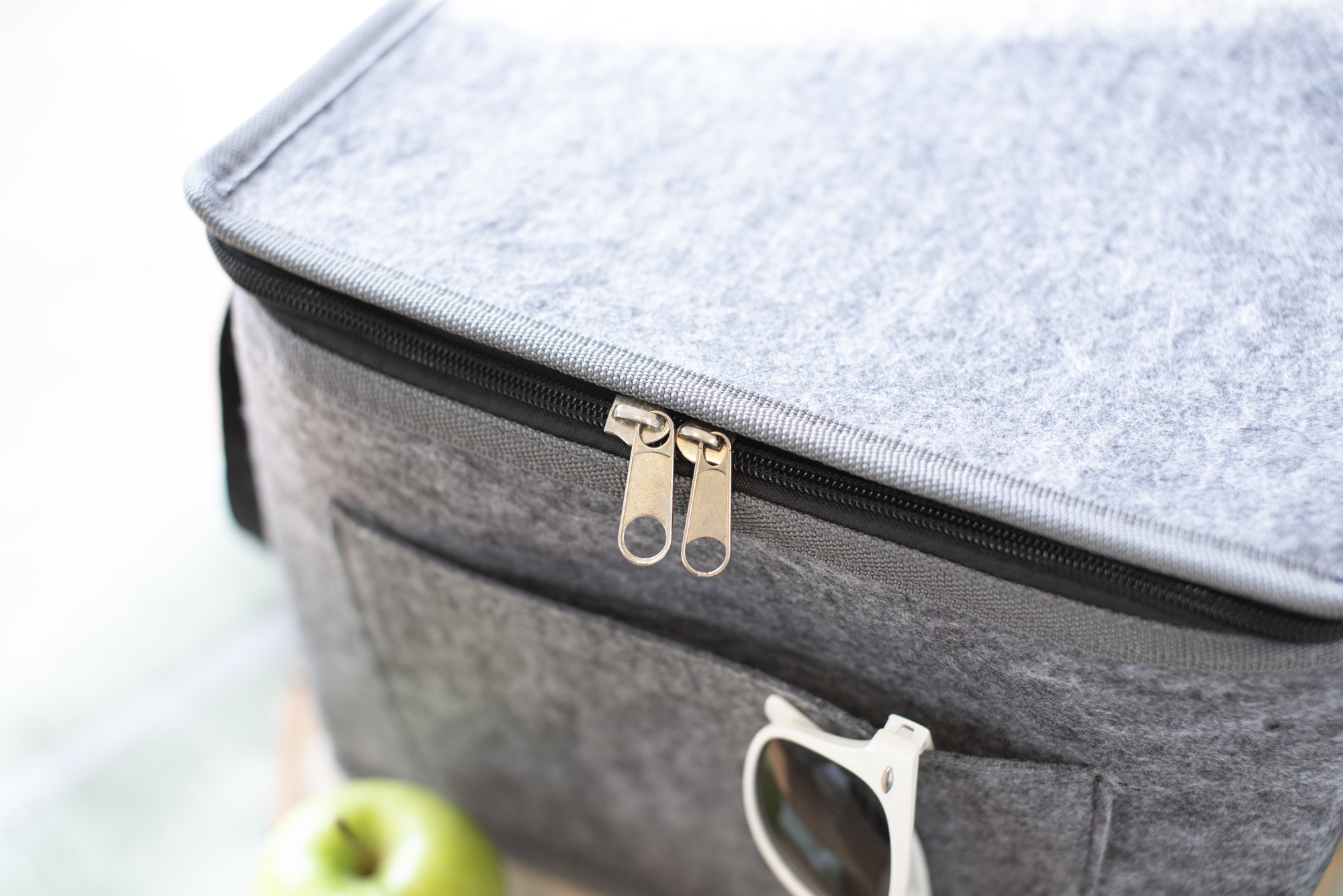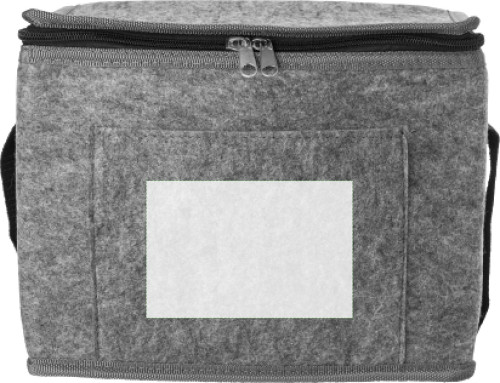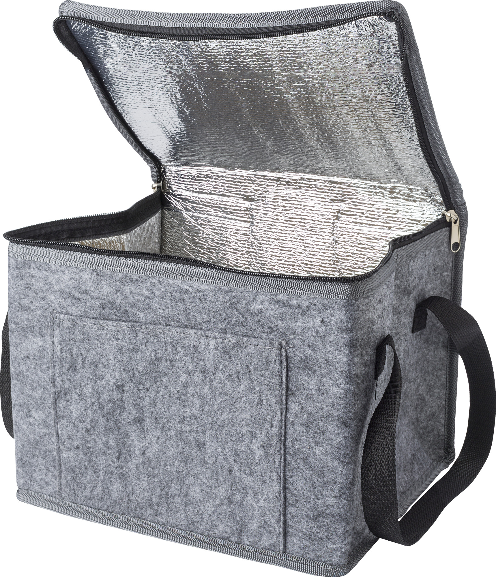 rPET-Filz-Kühltasche mit Alufolien-Innenausstattung und Vordertasche.