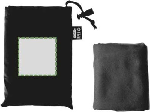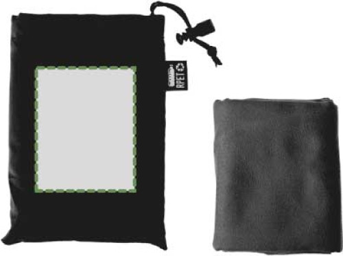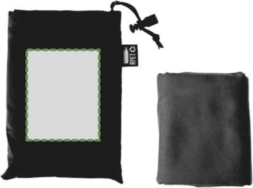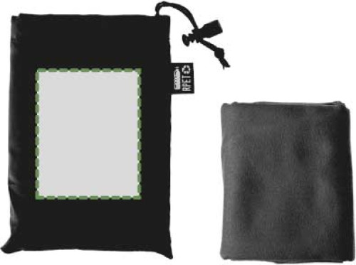 RPET-Handtuch (79 x 30 cm) in RPET-Beutel mit Kordelzugverschluss.