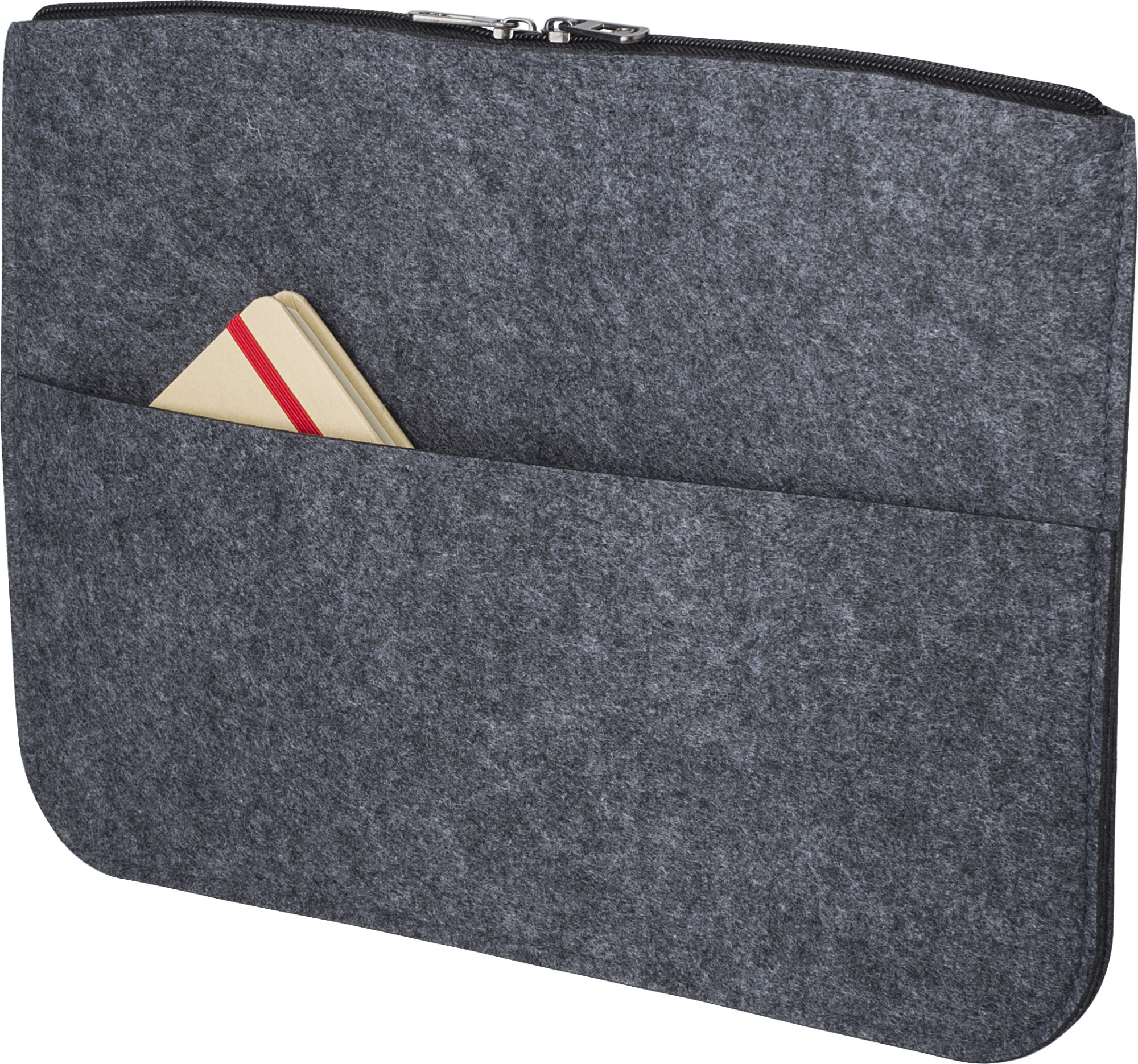 rPET-Filz-Laptop-Tasche (14 Zoll) mit Reißverschluss und kleiner Vordertasche.