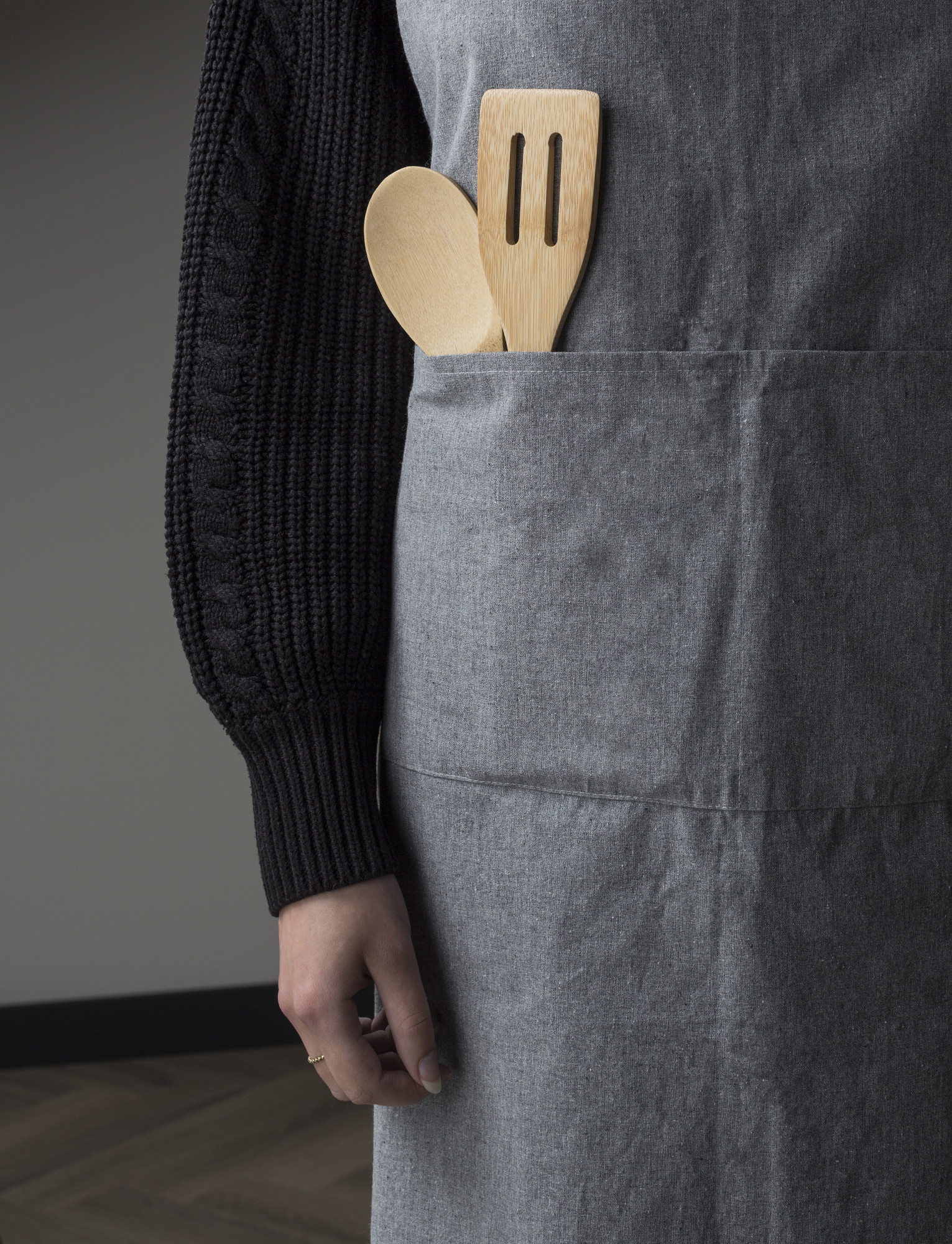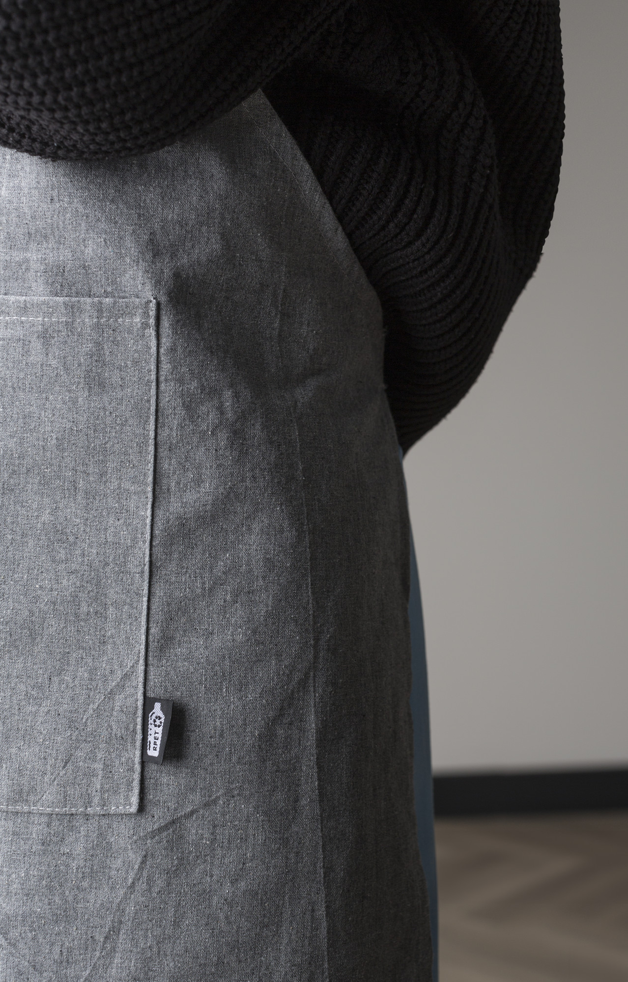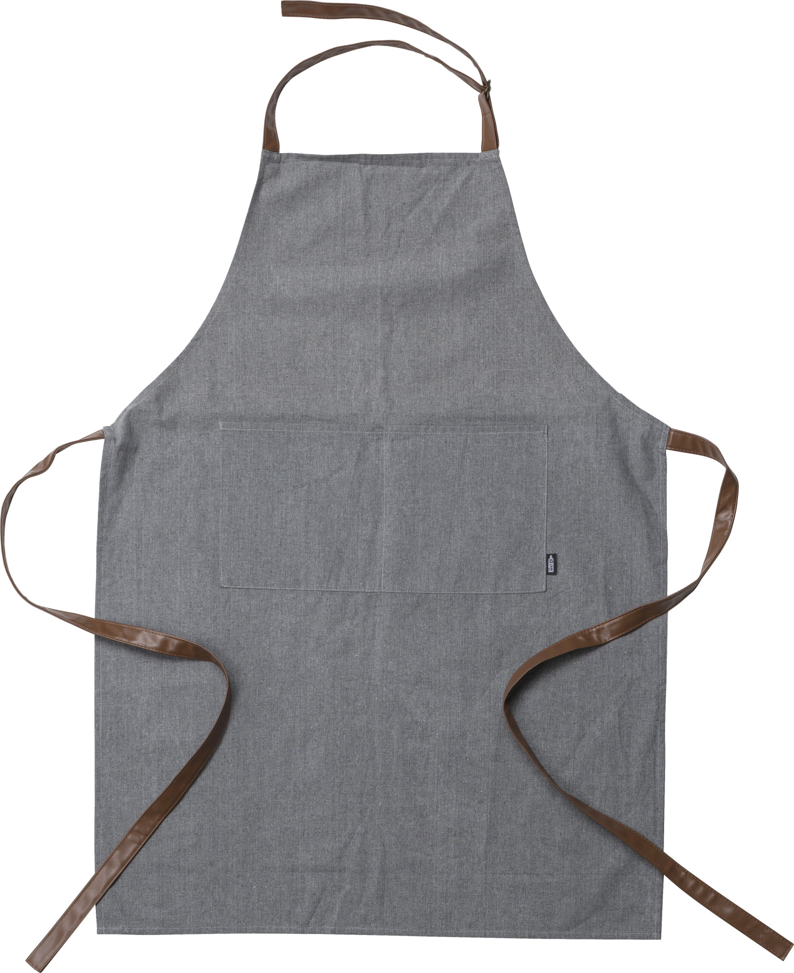 rPET-Schürze mit verstellbaren PU-Riemen. Inklusive Fronttasche.