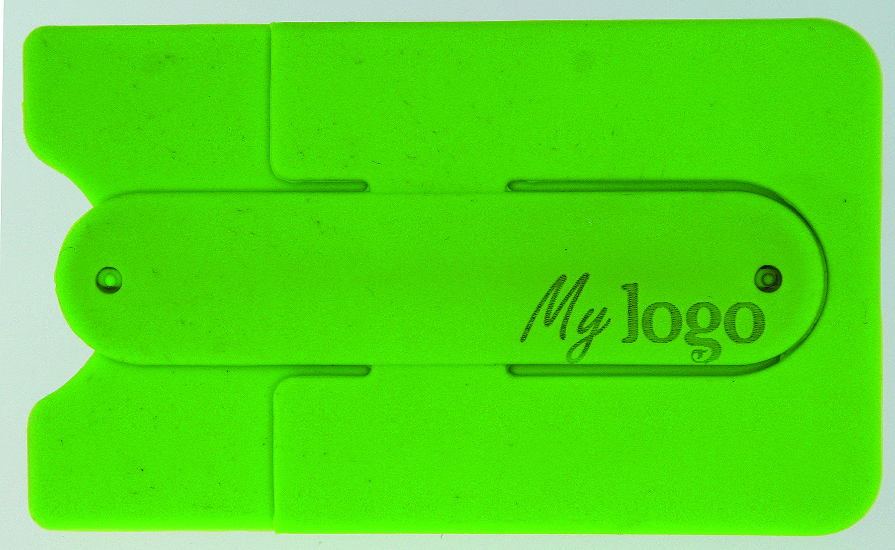 Intelligenter Kartenorganizer aus Silikon mit Aufstellfunktion für das Smartphone. Original 3M® wiederablösbare Klebefläche, VPE 600. Polybeutel, Design-Infokarte